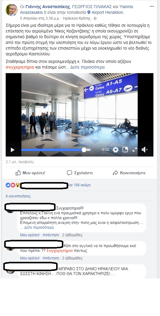 Εδώ έφτασε στο σημείο αντιδήμαρχος – σε ρόλο… Αρναουτάκη!-  να διαφημίζει περίπου ως “δικό του έργο” τον εκσυγχρονισμό του αεροδρομίου “Καζαντζάκης” και να εισπράττει συγχαρητήρια! (δείτε την εικόνα)