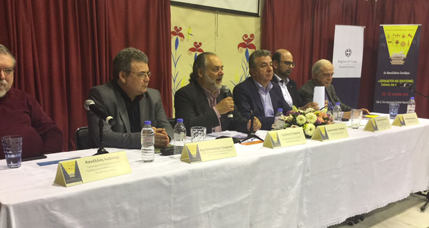 Ο Περιφερειάρχης Κρήτης Σταύρος Αρναουτάκης στο χαιρετισμό του είπε, ότι, πρόκειται για ένα συνέδριο που εναρμονίζεται πλήρως με τη στρατηγική της Περιφέρειας στον τομέα του πολιτισμού και τη σύνδεσή του, με όλους τους πυλώνες της τοπικής οικονομίας, αλλά κυρίως για την καθιέρωση της Κρήτης, ως μιας Περιφέρειας με μοναδικό πολιτισμικό απόθεμα, ικανό να την αναγάγει στις πρώτες θέσεις της παγκόσμιας πολιτιστικής διπλωματίας. Παράλληλα ο κ Αρναουτάκης, πρόσθεσε, πως η συμμετοχή της Περιφέρειας  στην διοργάνωση του συνεδρίου προκύπτει από τις στρατηγικές προτεραιότητες που έχουμε θέσει για ανάληψη πρωτοβουλιών στο πεδίο της τυπικής και άτυπης εκπαίδευσης, της δια βίου μάθησης και της απασχόλησης, ενώ επισήμανε το σημαντικό έργο που γίνεται σε όλες τις βαθμίδες εκπαίδευσης του νησιού.