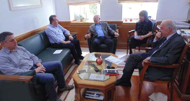 Για την παρουσίαση της βιογραφίας είχαν σήμερα συνάντηση στη Περιφέρεια ο Περιφερειάρχης Σταύρος Αρναουτάκης, ο Δήμαρχος Ηρακλείου Βασίλης Λαμπρινός και ο συγγραφέας Νικόλαος Παπαδάκης, παρουσία στελεχών του ιδρύματος «Ελευθέριος Βενιζέλος».