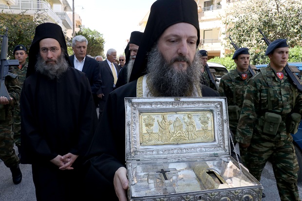 Ε, λοιπόν δεν έχουν σχέση! Αυτό λέγεται θρησκοληψία και δυστυχώς είναι για κάποιους ίσως ακατανόητο να στέλνονται από τη Σχολή Εφέδρων Αξιωματικών αγήματα για να συνοδεύουν λείψανα Αγίων! Ακόμα και για όσους πιστεύουν την «ιερότητα» του λειψάνου, η θέση του είναι σε κάποια οστεοθήκη και όχι να περιφέρεται και χιλιάδες «πιστοί» να βγάζουν σέλφι μαζί του, εικόνες απόλυτης γραφικότητας που συνάδουν σε εμποροπανήγυρη και όχι σε θρησκευτική τελετή.