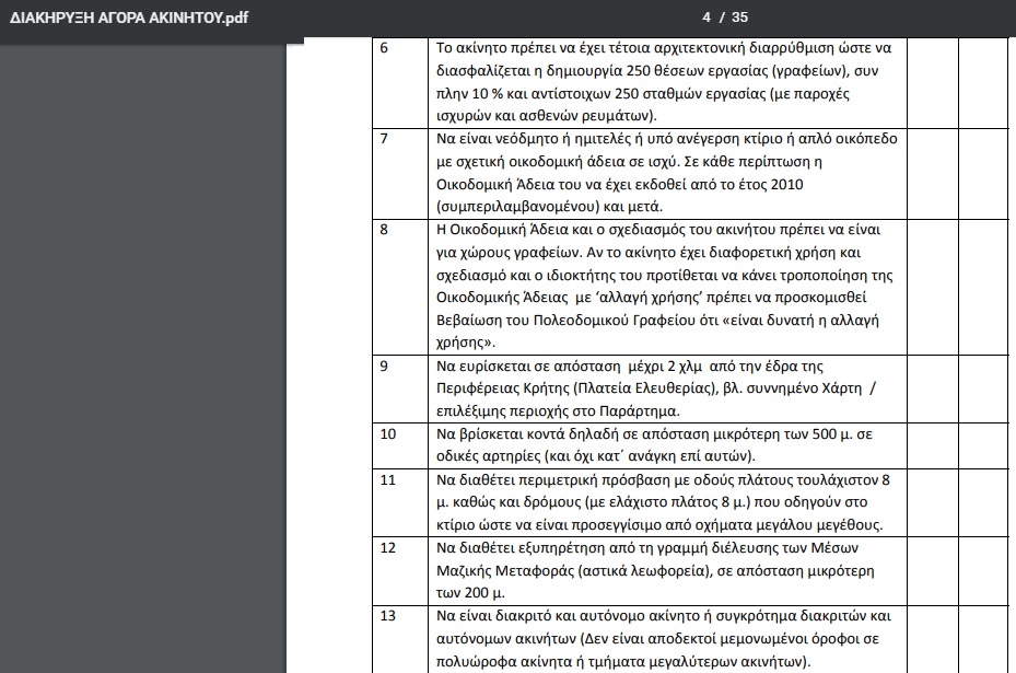 Κριτήριο 9: Το ακίνητο να βρίσκεται σε ακτίνα 2 χλμ από την σημερινή έδρα της Περιφέρειας Κρήτης. Το συγκεκριμένο ακίνητο απέχει 1.870 μέτρα