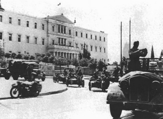Το πρωί της Κυριακής του Θωμά, 27 Απριλίου 1941, η Αθήνα ξυπνούσε τρομαγμένη. Όλη τη νύχτα την ανατάραζαν υπόκωφοι κρότοι από εκρήξεις αποθηκών πυρομαχικών, που –για να μην πέσουν στα χέρια των Γερμανών– καίγονταν στα προάστια της Αθήνας και του Πειραιά. Από νωρίς το πρωί, γερμανικά αεροπορικά σμήνη πετούσαν επιδεικτικά σε χαμηλό ύψος πάνω από την ελληνική πρωτεύουσα και τις γειτονικές περιοχές.