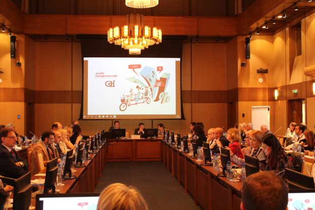 Οι καλές πρακτικές στον τομέα της Ηλεκτρονικής Διακυβέρνησης στη Περιφέρεια Κρήτης και ειδικότερα στη Διεύθυνση Μεταφορών και Επικοινωνιών της Π.Ε. Ηρακλείου, παρουσιάστηκαν στο 8ο συνέδριο για το Κοινό Πλαίσιο Αξιολόγησης στη Σόφια της Βουλγαρίας, από τους εκπροσώπους της Περιφέρειας Κρήτης, Περιφερειακή Ενότητα Ηρακλείου και συγκεκριμένα από: Αντιπεριφερειάρχη Ηρακλείου Ευριπίδη Κουκιαδάκη, Εκτελεστικό Γραμματέα της Περιφέρειας Κρήτης Δρ. Νίκο Ραπτάκη, Εντεταλμένο Σύμβουλο Ηλεκτρονικής Διακυβέρνησης της Περιφέρειας Κρήτης Δρ. Κυριάκο Κώτσογλου, Προϊστάμενο του Τμήματος Διπλωμάτων της Διεύθυνσης Μεταφορών και Επικοινωνιών της Π.Ε.Η. Θεόδωρο Καλαϊτζάκη, και Μανόλη Καλαϊτζάκη ερευνητή του Ι.Τ.Ε. και project manager του έργου από την πλευρά του Ιδρύματος, ως επιστημονικού συνεργάτη, της Περιφέρειας Κρήτης. Στη Σόφια, οι εκπρόσωποι της Περιφέρειας Κρήτης, Περιφερειακής Ενότητας Ηρακλείου, σε συνεργασία με το ΤΕΕ, παρουσίασαν την καινοτομία της Διεύθυνσης Μεταφορών και Επικοινωνιών της Π.Ε.Η., μέσα από το Κοινό Πλαίσιο Αξιολόγησης (Common Assessment Framework) του Πανευρωπαϊκού Συστήματος Επιχειρησιακής Αριστείας του Δημοσίου. Στο 8ο Συνέδριο των χρηστών του Κοινού Πλαισίου Αξιολόγησης, παρουσιάστηκαν μερικές από τις βέλτιστες Ευρωπαϊκές πρακτικές, που κοινό χαρακτηριστικό είχαν, ότι στην επίτευξή τους, σημαντικό ρόλο διαδραμάτισε η Συμμετοχή της Ηγεσίας αλλά και η δέσμευση στο Στόχο που τέθηκε.