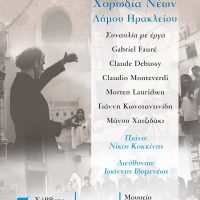 Η Χορωδία Νέων του Δήμου Ηρακλείου θα πραγματοποιήσει συναυλία το Σάββατο 5 Μαΐου 2018 στις 21:00 στο Μουσείο Χριστιανικής Τέχνης Αγίας Αικατερίνης Σιναϊτών. Η χορωδία, υπό την διεύθυνση του Ιωάννη Ιδομενέως, θα παρουσιάσει έργα των Gabriel Fauré, Claude Debussy, Claudio Monteverdi, Morten Lauridsen, Γιάννη Κωνσταντινίδη και Μάνου Χατζιδάκι. Στο πιάνο ο Νίκος Κοκκίνης. Η είσοδος θα είναι ελεύθερη για το…