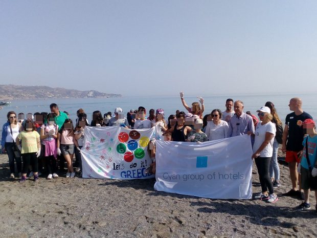 Από το 1ο Δημοτικό Σχολείο Γαζίου, 85 μαθητές και εκπαιδευτικοί, καθαρισμός τμήματος της παραλίας στο ύψος του ξενοδοχείου Agapi beach.
