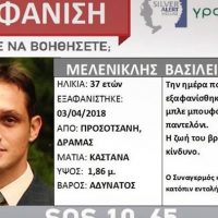 Συναγερμός έχει σημάνει στις Αρχές για την εξαφάνιση ενός 37χρονου άνδρα από την Προσοτσάνη Δράμας. O Βασίλειος Μελενικλής την ημέρα που εξαφανίστηκε, φορούσε μπλε μπουφάν και τζιν παντελόνι. Η ζωή του βρίσκεται σε κίνδυνο. Όποιος γνωρίζει οτιδήποτε για την υπόθεση μπορεί να επικοινωνήσει με τη ΓΡΑΜΜΗ ΖΩΗΣ, όλο το 24ωρο, στην Εθνική Γραμμή SOS 1065 ή με το τοπικό αστυνομικό…