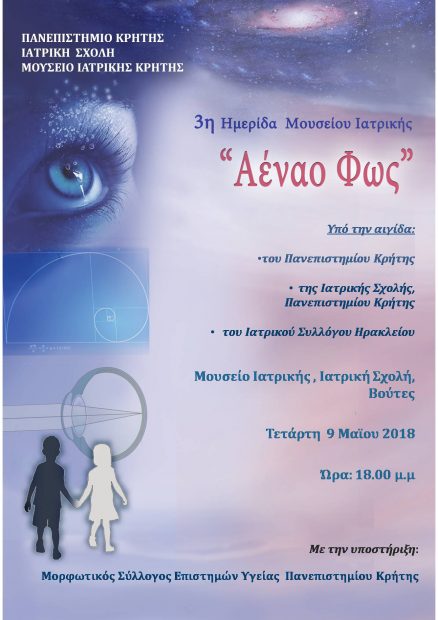 Κατά τη διάρκεια της ημερίδας θα προβάλλεται παρουσίαση στο Μουσείο Ιατρικής με αποφθέγματα και ποιήματα για το Φως. Υπεύθυνοι παρουσίασης: Δαρεία Τσαγκαράκη, Στάθης Δετοράκης