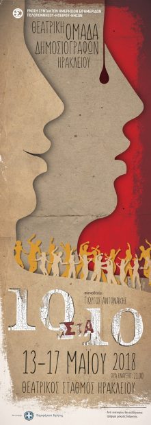 Πρεμιέρα κάνει την Κυριακή 13 Μαΐου 2018, στο Θεατρικό Σταθμό Ηρακλείου η επετειακή παράσταση με γενικό τίτλο «10 στα 10»  της Θεατρικής Ομάδας Δημοσιογράφων Ηρακλείου της ΕΣΗΕΠΗΝ,  με αφορμή τη συμπλήρωση των 10 χρόνων λειτουργίας της υπό τη σκηνοθετική καθοδήγηση του Γιώργου Αντωνάκη.