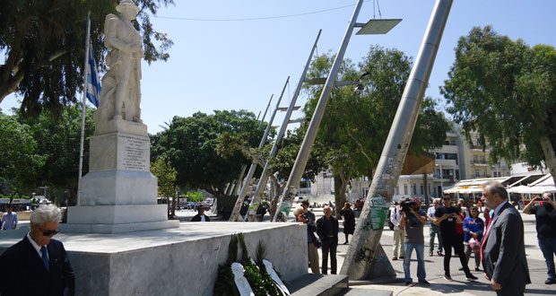 Με επιμνημόσυνη δέηση και κατάθεση στεφάνων στο Μνημείο του Άγνωστου Στρατιώτη τιμήθηκε σήμερα στο Ηράκλειο η επέτειος των Εθνικών Αγώνων και της Εθνικής Αντίστασης κατά του ναζισμού και του φασισμού 1941-1944 (η 9η Μάιου έχει καθιερωθεί ως ημέρα λήξης του δεύτερου Παγκοσμίου Πολέμου).