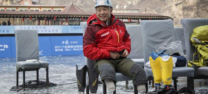 «Ο Κινέζος ορειβάτης, ο οποίος έχει υποστεί ακρωτηριασμό και των δύο κάτω άκρων του, σκαρφάλωσε στην κορυφή στις 8:40 σήμερα το πρωί (τοπική ώρα).