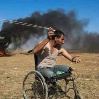 Φαντί Αμπού Σέλμι δεν βρίσκεται στη ζωή. Ήταν ένας από τους 60 Παλαιστίνιους που έπεσαν χθες νεκροί από τα πυρά των Ισραηλινών στρατιωτών. Ο Φαντί είχε χάσει τα πόδια του σε ισραηλινή επιδρομή το 2008. Όμως, παρέμενε στην πρώτη γραμμή. Με το αναπηρικό αμαξίδιο και την αυτοσχέδια σφεντόνα του, αυτός ο θαρραλέος άνδρας στεκόταν απέναντι από τους πάνοπλους στρατιώτες του Ισραήλ…