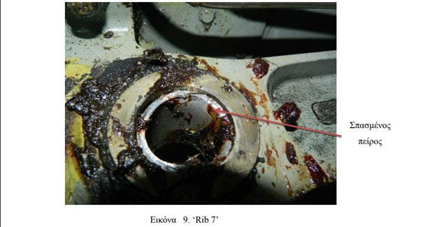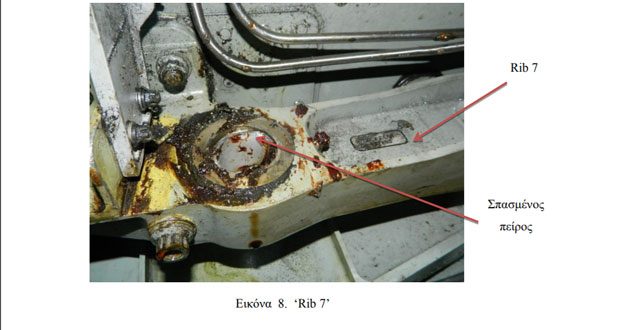  Ο εσωτερικός πείρος του ‘Drag Brace’ που το συνδέει με το ‘Rib’ 7, βρέθηκε σπασμένος (Εικ. 8-9-10).