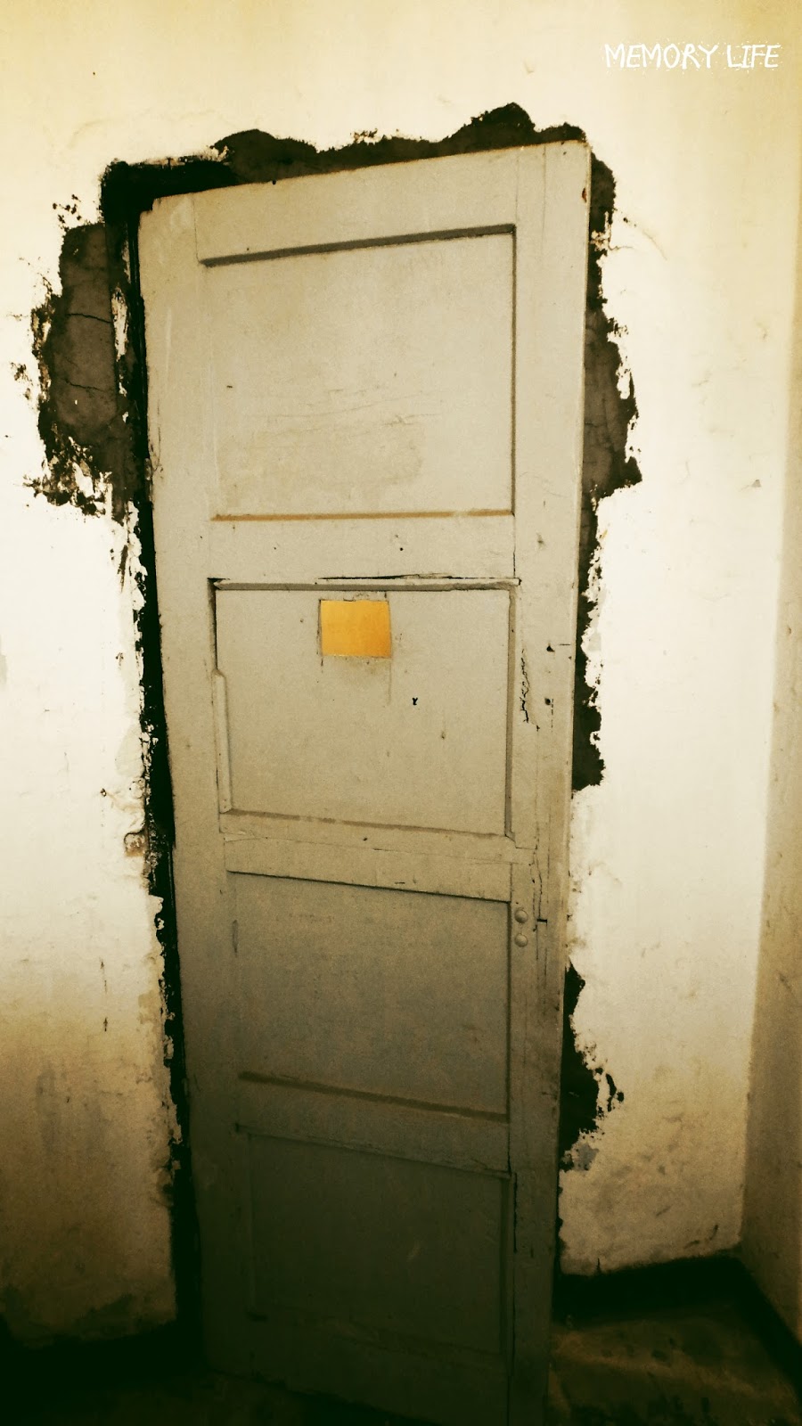 Άποψη μέσα από το κελί με κλειστή την πόρτα. Διακρίνεται το παραθυράκι που έδιναν το φαγητό στον κρατούμενο