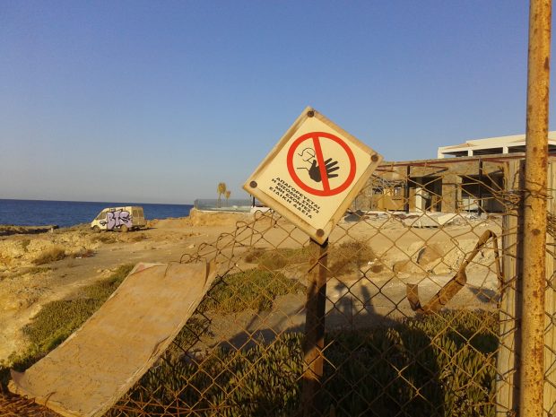 Μάλιστα δυτικά του χώρου του ξενοδοχείου, έχει τοποθετηθεί συρματόπλεγμα και απαγορευτική πινακίδα, που λέει: “ΑΠΑΓΟΡΕΥΕΤΑΙ Η ΕΙΣΟΔΟΣ ΣΤΟΥΣ ΜΗ ΕΧΟΝΤΕΣ ΕΙΔΙΚΗ ΑΔΕΙΑ”.