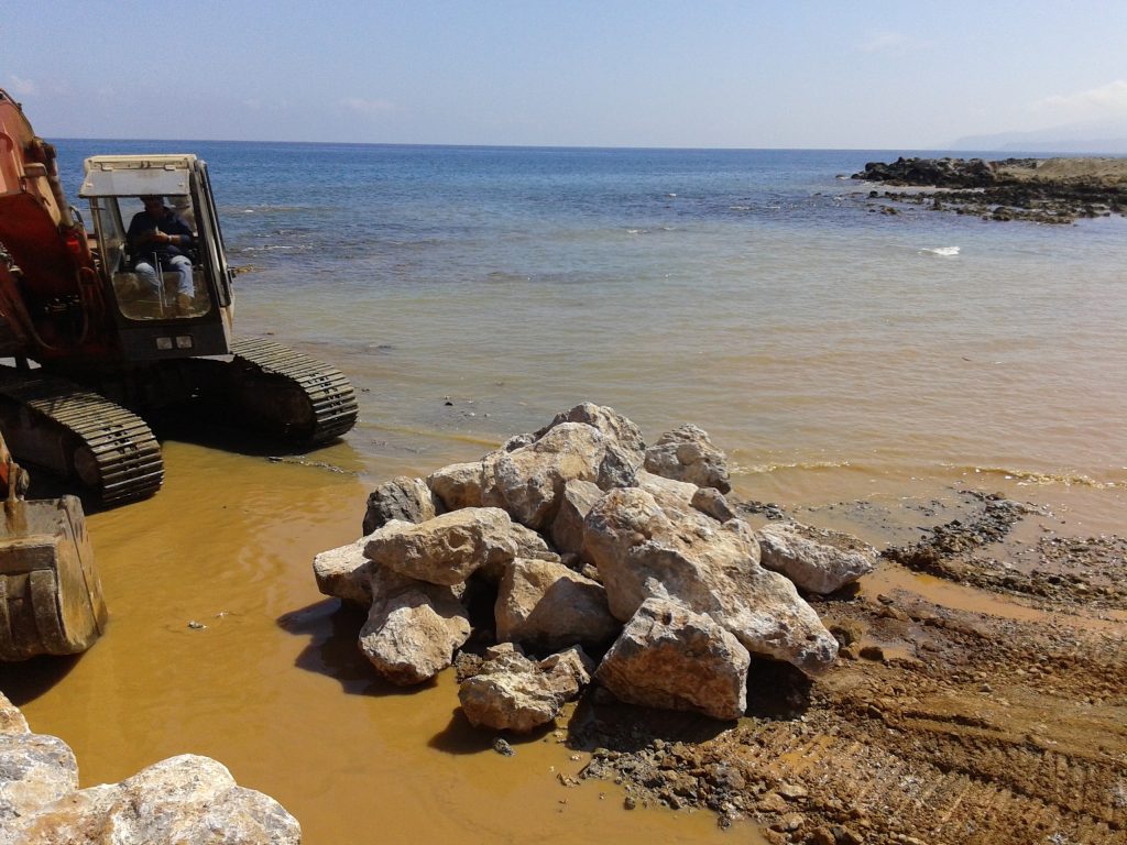 Κι όχι μόνο αυτό. Κατασκεύασαν με ογκόλιθους και «οχυρωματικό έργο», τοίχο ύψους 2-3 μέτρων, που απλώνεται και μέσα στη θάλασσα και δεν επιτρέπουν την πρόσβαση προς την “ιδιωτική” πλέον παραλία.