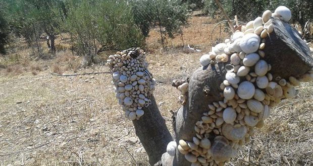 Οι χοχλιοί έχουν τυλίξει κορμούς δέντρων και φυτά, ο ένας κολλημένος στον άλλο, δημιουργώντας πραγματικά κομψοτεχνήματα, κάνοντας τα να μοιάζουν… με ψηφιδωτά!
