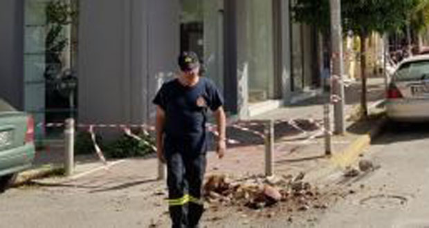 Από τύχη δεν τραυματίστηκε σοβαρά κάποιος περαστικός από το πεζοδρόμιο στη συμβολή της Αγ. Ανδρέου με την Σαχτούρη στην Πάτρα, όταν ολόκληρο μπαλκόνι κατέληξε πάνω σε προστατευτικό στέγαστρο ακριβώς πάνω από πολυσύχναστο πεζοδρόμιο.