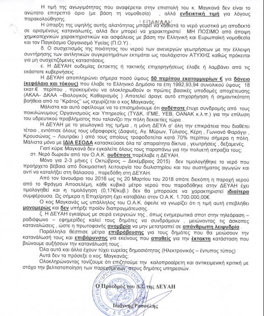 Δείτε ολόκληρη την επιστολή του προέδρου της ΔΕΥΑΗ ΕΔΩ