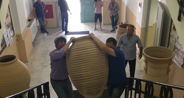Παράλληλα ο Πρόεδρος του συλλόγου Γιώργος Μαυραντωνάκης, ευχαρίστησε τον Περιφερειάρχη για την στήριξη του στην αγγειοπλαστική παράδοση και στον πολιτισμό της Κρήτης, λέγοντας ότι η κίνηση τους να φέρουν τα 4 πιθάρια έχει πολλούς συμβολισμούς και εξήγησε ότι « τα δύο είναι Θραψανιώτικα αντίγραφα, το τρίτο είναι αντίγραφο από την Κορώνη Μεσσηνίας και το άλλο από την Μικρά Ασία ώστε να έχουμε στην Περιφέρεια μας αντιπροσωπευτική ενότητα εκπροσώπηση στον τομέα του πιθαριού με τα μεγάλα αγγειοπλαστικά κέντρα εκτός Κρήτης». Στο Θραψανό – πρόσθεσε ο Πρόεδρος λειτουργούν 14 αγγειοπλαστικά εργαστήρια που κάνουν εξαγωγές σε όλο τον κόσμο και έτσι παράλληλα μεταφέρουμε τον πολιτισμό μας παντού. Σήμερα η κίνηση μας αυτή, έχει πολλούς συμβολισμούς αφενός γιατί προέρχονται από ένα χωριό, το χωριό των πιθαδάρων στο Θραψανό, που είναι ένα κέντρο από τα καλύτερα στην Ευρώπη και αφετέρου να αναδείξουμε και την ευαισθησία του Περιφερειάρχη στα θέματα αγγειοπλαστικής αφού και στο παρελθόν πολλές πράξεις του και ενέργειες του στόχευαν στην ανάδειξη αυτού του πλούτου που έχουμε ως χωριό και ως Περιφέρεια.