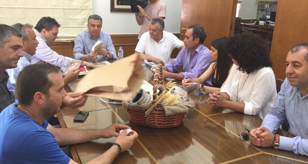 Τον Πρόεδρο και τα μέλη του Πολιτιστικού Συλλόγου Θραψανού υποδέχτηκε ευχαριστώντας τους στην είσοδο της Περιφέρειας ο Περιφερειάρχης Σταύρος Αρναουτάκης.