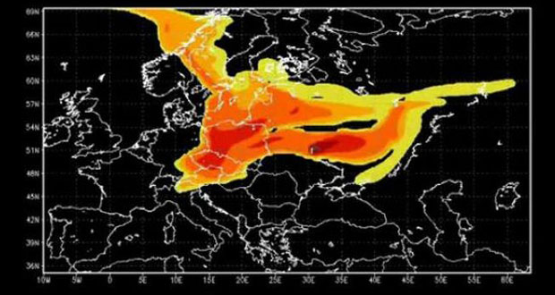 Το γράφημα απεικονίζει το ταξίδι του ραδιενεργού νέφους από το πυρηνικό ατύχημα του Τσερνόμπιλ