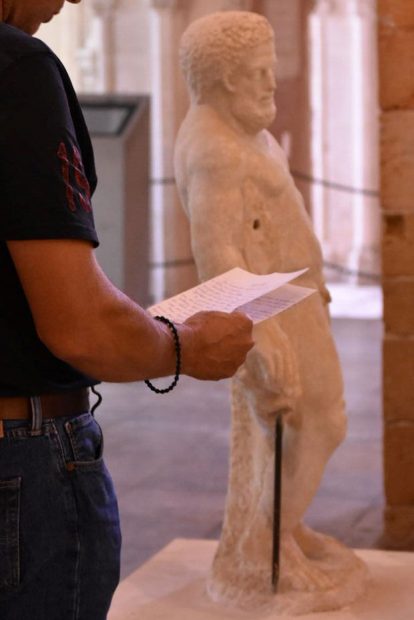 Την ημέρα της εκδήλωσης, οι αρχαιολόγοι της Εφορείας υποδέχτηκαν και ξενάγησαν στην έκθεση του Μουσείου τα μέλη της ομάδας του ΚΕΘΕΑ. Κατά τη ροή της ξενάγησης, τα μέλη της ομάδας, αφηγήθηκαν τις δικές τους ιστορίες για το «Σφράγισμα του Ηγεμόνα» από την ανασκαφή στο λόφο Κάστελλι της πόλης μας που χρονολογείται στον 15ο αι π.Χ., για έναν μαχαιροπέλεκυ που βρέθηκε σε τάφο του 15ου – 12ου αι. π.Χ. στην περιοχή των δικαστηρίων, για ένα νόμισμα από τη Γόρτυνα του 5ου αι. π.Χ. και για το άγαλμα του Ηρακλή από τα Δράμια του 3ου αι. μ.Χ.. Κατ’ αυτό τον τρόπο, η αρχαιολογική αφήγηση που φέρει κάθε έκθεμα αντιπαρατέθηκε με μια άλλη βιωματική αφήγηση πλούσια σε συναίσθημα.