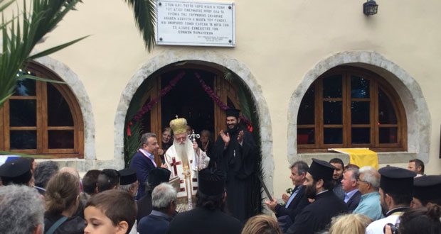 Των εγκαινίων προηγήθηκε Αγιασμός που τέλεσε ο Μητροπολίτης Λάμπης και Σφακίων Ειρηναίος, ενώ νωρίτερα ο Περιφερειάρχης, η Αντιπεριφερειάρχης, ο Δήμαρχος, Περιφερειακοί-Δημοτικοί σύμβουλοι, και εκατοντάδες πολίτες εκκλησιάστηκαν στον παρακείμενο εορτάζων Ιστορικό Μοναστήρι του Αγ Πνεύματος. Ο Μητροπολίτης κκ Ειρηναίος που χοροστάτησε της θείας λειτουργίας, ο Δήμαρχος Γιάννης Ταταράκης, ο Ηγούμενος της Μονής Βαρθολομαίος ευχαρίστησαν στις προσφωνήσεις τους δημόσια τον κ Αρναουτάκη για την παρουσία του αλλά και την έμπρακτη συμβολή του στην υλοποίηση του οδικού έργου, αλλά και άλλων έργων στην ευρύτερη περιοχή. Μάλιστα σε ένδειξη αναγνώρισης του έργου του από την Ιερά Μόνη δόθηκε Σταυρός του Μοναστηριού στον Περιφερειάρχη και τιμητική πλακέτα, όπως τιμητικές πλακέτες και ευχαριστίες για το νέο οδικό έργο δόθηκαν στην Αντιπεριφερειάρχη, στον Δήμαρχο, στον πρόεδρο της κοινότητας.