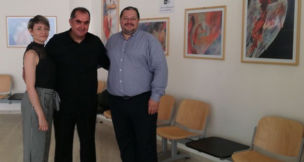 Ο Καθηγητής Πανεπιστημίου Κρήτης Δρ. Νικόλαος Τζανάκης, με τη Δρ. Ευριδίκη Πατελάρου, Πρόεδρο του τμήματος Νοσηλευτικής (δεξιά) και τη Δρ. Αθηνά Πατελάρου, Επικ. καθηγήτρια Νοσηλευτικής (αριστερά)