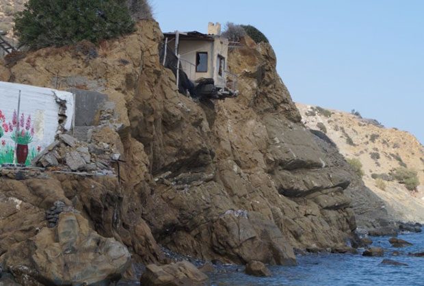 Ξαφνιάζει τους επισκέπτες η εικόνα ενός σπιτιού που βρίσκεται κυριολεκτικά στον αέρα και πάνω από την θάλασσα στα Πλατειά Περάματα του Δήμου Φαιστού.