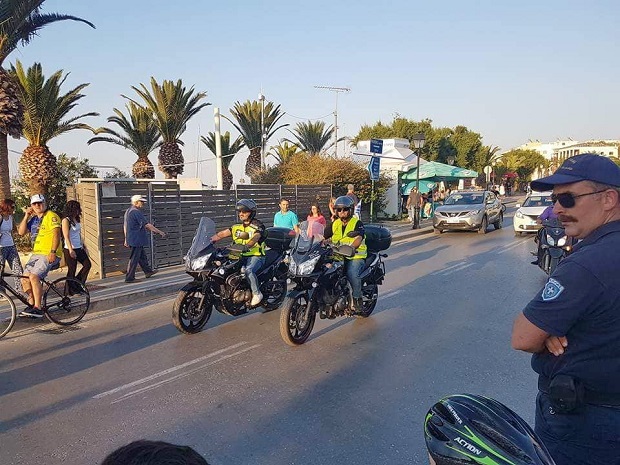 Κατόπιν εντολών της Τροχαίας, οι μοτοσικλέτες των Vstrom Greek Riders Ρεθύμνου, συνόδευαν, επιτηρούσαν και διασφάλιζαν τη συνεχή και ομαλή ροή, όλων όσων συμμετείχαν με τα ποδήλατά τους.