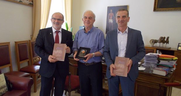 Με τον Δήμαρχο Ηρακλείου Βασίλη Λαμπρινό στο γραφείο του στην Λότζια συναντήθηκε σήμερα, Πέμπτη 7 Ιουνίου ο πρόεδρος της Γενικής Συνομοσπονδίας Επαγγελματιών, Βιοτεχνών και Εμπόρων Ελλάδας (ΓΣΕΒΕΕ) Γιώργος Καββαθάς, παρουσία του Αντιδημάρχου Προγραμματισμού Πέτρου Ινιωτάκη. Στην συνάντηση παρευρέθη ο πρόεδρος της ΟΕΒΕΝΗ Χαράλαμπος Λεκάκης καθώς και αντιπροσωπεία των συμμετεχόντων στο «1ο Συμπόσιο Οικονομίας – Επιχειρηματικότητας και Καινοτομίας» που θα πραγματοποιηθεί στο Επιμελητήριο Ηρακλείου την Παρασκευή 8 και το Σάββατο 9 Ιουνίου.