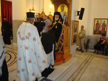 Η τελετή άρχισε με την υποδοχή της Ιερής εικόνας της Παναγίας «Άξιον Εστί» από τον Αρχιεπίσκοπο Κρήτης κ.κ. Ειρηναίο, όπου στη συνέχεια χοροστάτησε στον Εσπερινό και ακολούθησε η προσκύνηση της Ιερής Εικόνας.