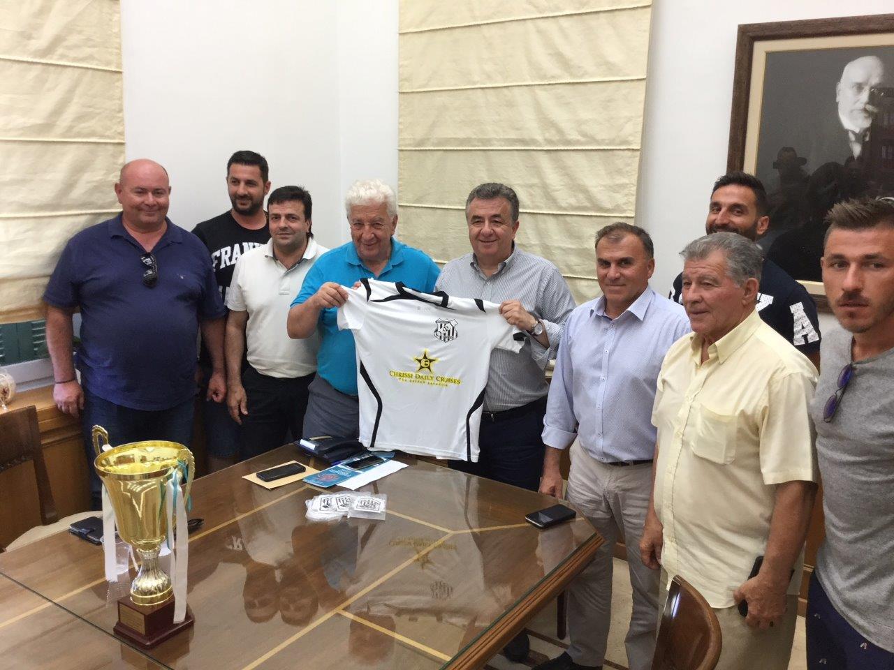 Παρόντες στη συνάντηση ήταν ο εντεταλμένος Σύμβουλος Αθλητισμού Νίκος Συριγωνάκης, ο Αντιπρόεδρος της ομάδας Μανόλης Ξομπλαράκης, ενώ τους ποδοσφαιριστές εκπροσώπησαν ο αρχηγός Γιάννης Τζελέπης και ο Μάριος Παπαδόπουλος, από τους διακριθέντες παίκτες της Γ΄ Εθνικής κατηγορίας.