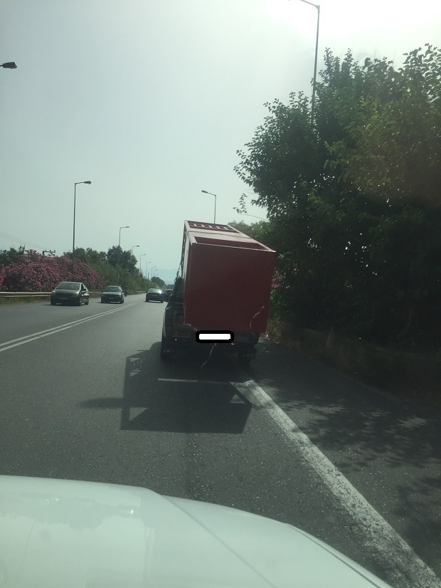 Καλημέρα είδα άρθρο για επικίνδυνη οδηγηση στον ΒΟΑΚ και σας στέλνω φωτό από 8/6/2018 διαδρομή από Ηράκλειο έως και Γεωργιούπολη που έστριψα : 2 φορτωμένα μικρά φορτηγάκια εταιρείας αλουμινίου με φορτίο πύργους ναυαγοσωστών(φανταστείτε το ύψος!).Πέρασαν το περιπολικό το οποίο ήταν στην Αγία πελαγία στη σκιά και ούτε που έδωσαν σημασία από το περιπολικό.Πήρα το 100 είπαν θα δούμε.Να σημειωθεί ότι πήγαιναν με τουλάχιστον 100χλμ και επιπλέον επικίνδυνες προσπεράσεις και φανταστείτε να έφευγε το φορτίο το οποίο ήταν δεμένο με ένα σκοινάκι!Μετά θα μας έφταιγε ο δρόμος πάλι!