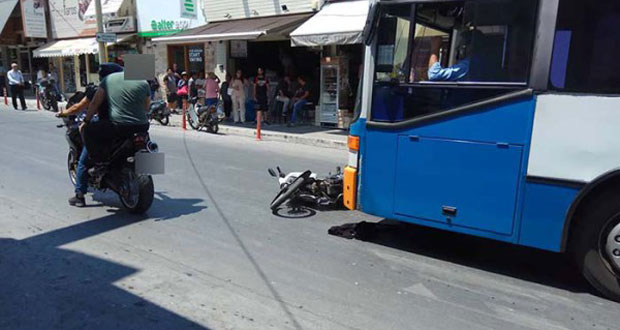 Μία διαμάχη ενός μοτοσικλετιστή με έναν οδηγό λεωφορείου ήταν η αιτία για να προχωρήσει, σύμφωνα με αυτόπτες μάρτυρες, ο πρώτος στο να βάλει πεσμένο το μηχανάκι του μπροστά από το λεωφορείο!