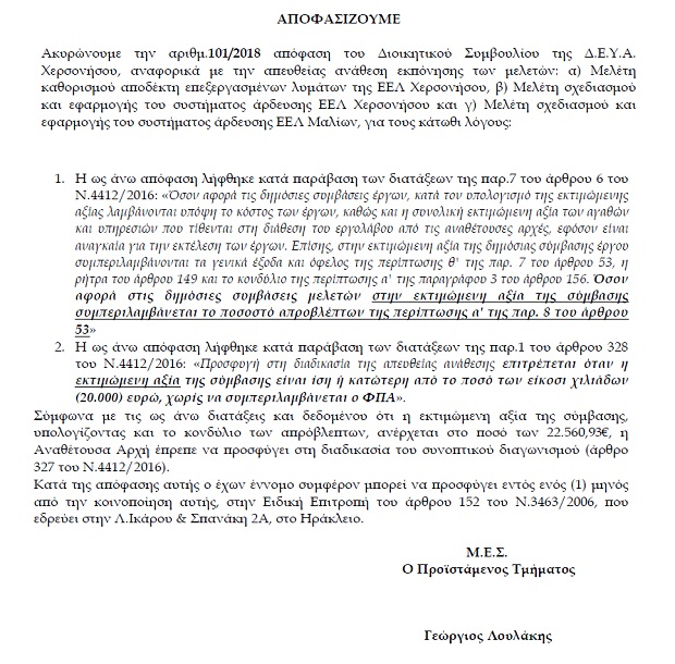 Σας ενημερώσαμε χθες για την παρέμβαση της Αποκεντρωμένης Διοίκησης Κρήτης και την ακύρωση απευθείας αναθέσεων του δήμου Χερσονήσου.