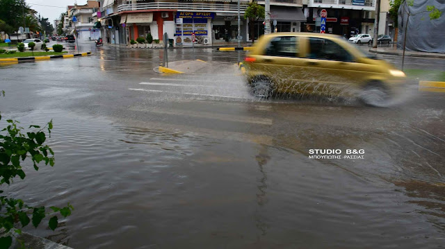 Επίσης ένας δρόμος μέσα στη πόλη του Άργους η οδός Σεφέρη έκλεισε προς στιγμής από τα νερά της βροχής.