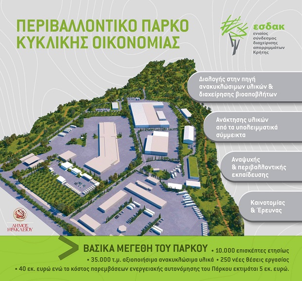 Πρόκειται για μια συνεργασία του Ε.Σ.Δ.Α.Κ. και του Δήμου Ηρακλείου, η οποία εντάσσεται στον τοπικό Σχέδιο Διαχείρισης Απορριμμάτων της Δημοτικής Αρχής και συνδυάζει τη διαχείριση των απορριμμάτων με την περιβαλλοντική εκπαίδευση με την αναψυχή. Το ECO Park, οργανώνει σε μια ενιαία έκταση πολλές διαφορετικές χρήσεις, προβλέπεται να είναι ανοιχτό σε επισκέψεις σχολείων, συλλόγων και φορέων και να μπορεί να αναπτύσσει ταυτόχρονα διάφορες δράσεις προώθησης της κυκλικής οικονομίας.