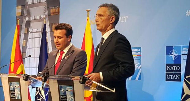 Την πρόσκληση των Συμμάχων του ΝΑΤΟ προς την κυβέρνηση των Σκοπίων για έναρξη των ενταξιακών συνομιλιών παρέδωσε στον πρωθυπουργό της πΓΔΜ, Ζόραν Ζάεφ, ο γενικός γραμματέας του ΝΑΤΟ, Γενς Στόλτενμπεργκ, κατά τη διάρκεια κοινής συνέντευξης Τύπου που παραχώρησαν, λίγο μετά τη λήξη των εργασιών της Συνόδου Κορυφής του ΝΑΤΟ στις Βρυξέλλες.