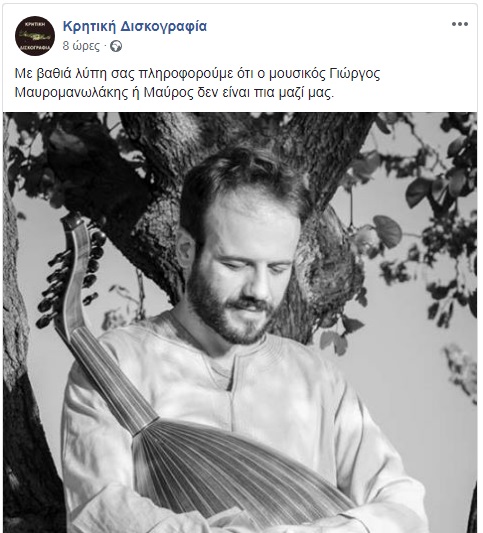 Την τραγική είδηση μετέδωσε λίγο μετά τα μεσάνυχτα η σελίδα “Κρητική Δισκογραφία”