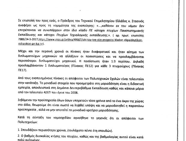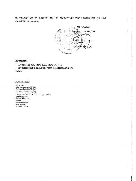 Εναλλακτικά, διαβάστε την επιστολή του ΤΕΕ/ΤΑΚ ΕΔΩ