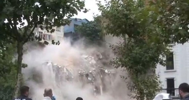 Τα τουρκικά τηλεοπτικά δίκτυα μετέδωσαν σε απευθείας σύνδεση την επιχείρηση καταγράφοντας λεπτό προς λεπτό και την κατάρρευση του κτιρίου, που άρχισε να ταλαντεύεται προτού πέσει λίγα μέτρα πιο κάτω σηκώνοντας ένα πυκνό σύννεφο σκόνης.