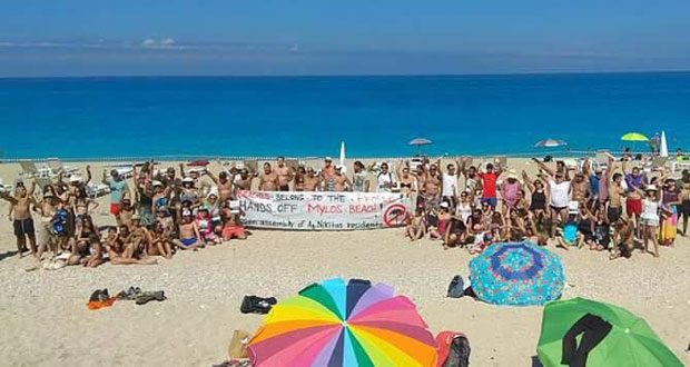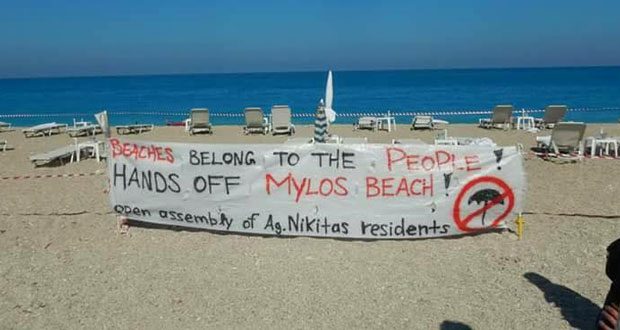 Από τον Ιούλιο του 2018, για πρώτη φορά στην ιστορία του νησιού, ένας ντόπιος επιχειρηματίας τοποθέτησε εκατοντάδες ομπρέλες και ξαπλώστρες στην παραλία, αλλάζοντας εντελώς το τοπίο. Η άδεια δόθηκε από την Κτηματική Υπηρεσία και την Εταιρεία Ακινήτων του Δημοσίου (ΕΤ.Α.Δ. Α.Ε.) στη Αθήνα, που σκοπός της είναι να ξεπουλάει τον δημόσιο πλούτο για να πληρώνει τους δανειστές και τις τράπεζες. Αυτό κατέστη δυνατό με τον μνημονιακό νόμο του 2017, όπου η δικαιοδοσία των παραλιών, κατά τη θερινή περίοδο, αφαιρέθηκε από τους Δήμους και πέρασε αποκλειστικά στην κτηματική υπηρεσία και την ΕΤΑΔ.