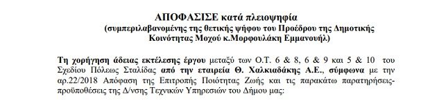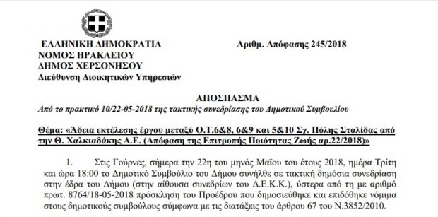 Το δημοτικό συμβούλιο είχε πάρει απόφαση για να επιτρέψει μια σειρά εργασιών, όπως καταγράφονται στο πρακτικό: