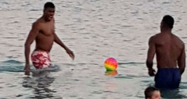 Τα αδέλφια Αντετοκούνμπο, συνοδεύονταν από μεγάλη παρέα κι αφού νωρίτερα είχαν γευματίσει σε μια από τις ταβέρνες της περιοχής, έκαναν και μια βουτιά στη θάλασσα, ενώ όπως θα δείτε κι από τις φωτογραφίες έπαιξαν και με μια μπάλα!