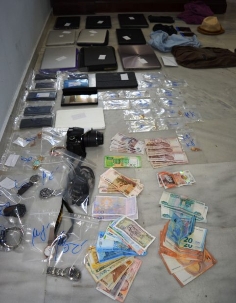 Ακολούθησε έρευνα στο αυτοκίνητο που επέβαιναν οι συλληφθέντες και στην κοινή τους οικία, όπου βρέθηκαν και κατασχέθηκαν, πλήθος κοσμημάτων, χρήματα και ηλεκτρονικές συσκευές.