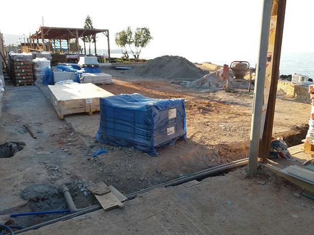 Στην ίδια περιοχή, άλλος ιδιώτης επιχειρηματίας κατέστρεψε την πλακόστρωση κοινόχρηστου χώρου, προκειμένου να εξυπηρετηθεί για εργασίες στην ιδιοκτησία του (επισυνάπτω φωτογραφίες). Μέσα από τον χώρο αυτό, πέρασε σωλήνες οι οποίες οδηγούν υγρά απόβλητα στην θάλασσα, και στην συνέχεια έφτιαξε ξανά το δάπεδο του κοινόχρηστου χώρου. Και αυτές τις εργασίες τις γνωρίζει η δημοτική αρχή, μάλιστα τις παρακολουθούσε και αυτές ο εδώ επιστάτης – επιβλέπων τοπικός  πολυπράγμων σύμβουλος του Δήμου.  Άραγε τι είδους απόβλητα θα οδηγούνται στη θάλασσα από τις σωλήνες αυτές; Ποιος έλεγξε την αποκατάσταση των ζημιών;.
