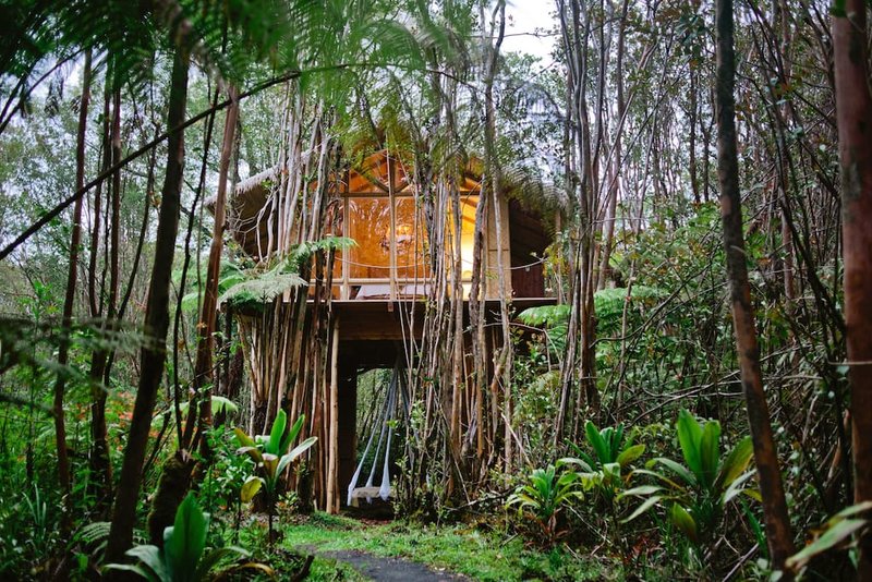Βρίσκεται στα όρια του εθνικού πάρκου Hawaii Volcanoes του Big Island κι αυτό το τροπικό δεντρόσπιτο είναι μέσα στην ζούγκλα.