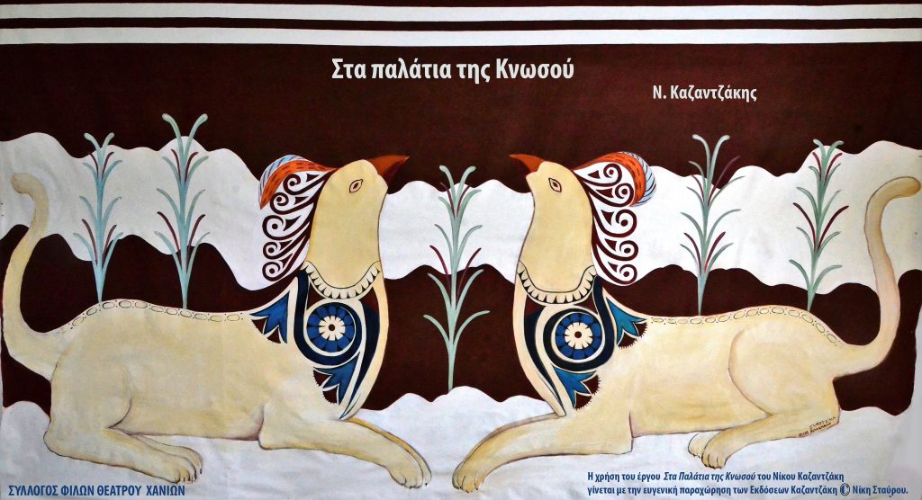 Ο Σύλλογος Φίλων Θεάτρου Χανίων παρουσιάζει το έργο του Νίκου Καζαντζάκη «Στα παλάτια της Κνωσού» την Κυριακή 18 Αύγουστου 2018 και ώρα 21:30 στο Κηποθέατρο «Ν. ΚΑΖΑΝΤΖΑΚΗΣ»