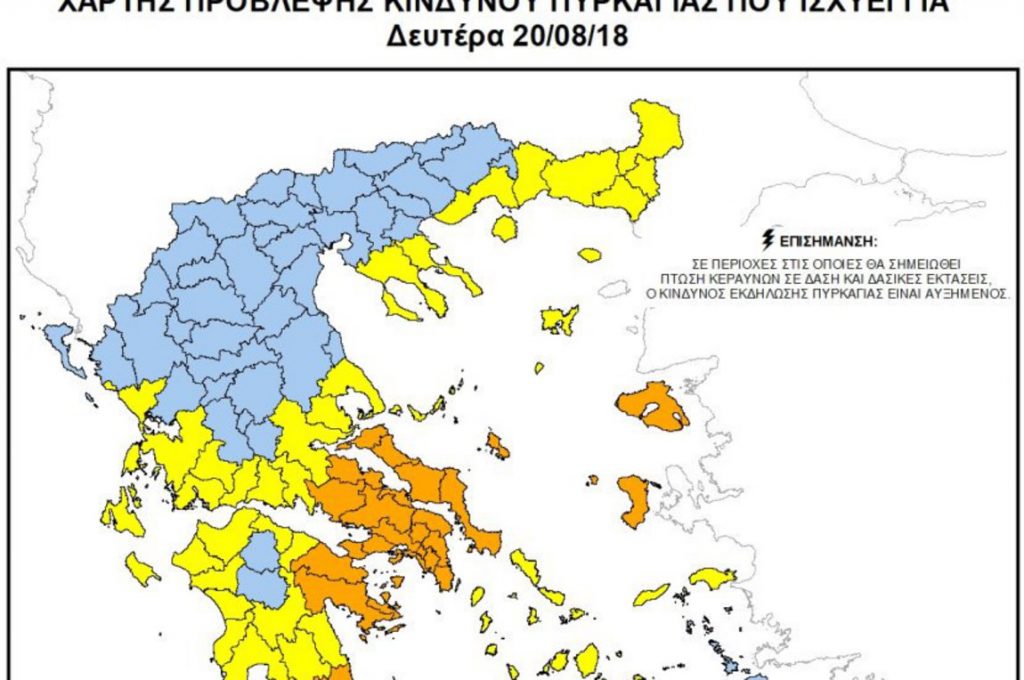 Σύμφωνα με το Χάρτη Πρόβλεψης Κινδύνου Πυρκαγιάς που εκδίδει η Γενική Γραμματεία Πολιτικής Προστασίας του Υπουργείου Εσωτερικών (www.civilprotection.gr), για σήμερα, προβλέπεται πολύ υψηλός κίνδυνος πυρκαγιάς (κατηγορία κινδύνου 4) για τις εξής περιοχές: